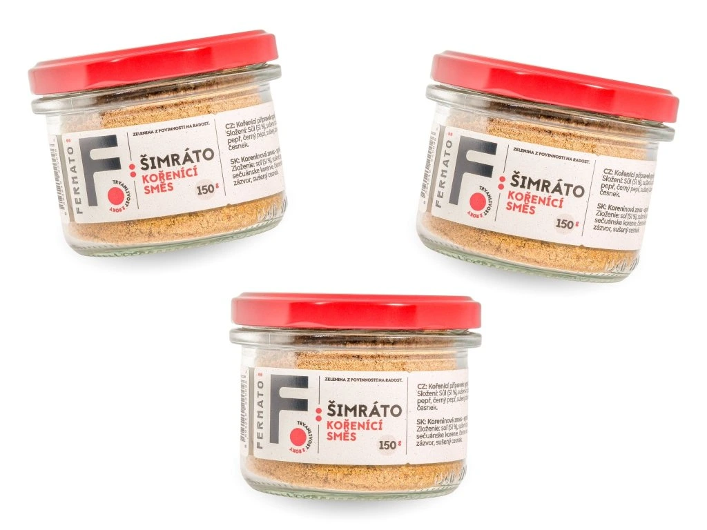 Ke směsi jsme přidali sečuánský pepř, černý pepř a sůl – vše v takovém poměru, aby bylo Šimráto maximálně univerzální.