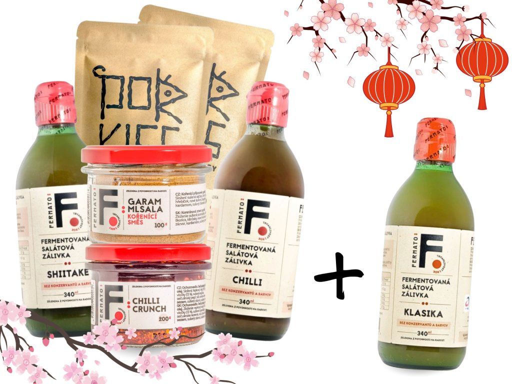 Fermato Shiitake – fermentovaná zálivka z rajčat, zázvoru, česneku a hub shiitake. Její chuť je hluboká, sladko-slaně-kyselá s výrazným umami nádechem, který jedním zalitím dostanete do každého jídla. Skvělá na asijské saláty, nudle, restovanou zeleninu i marinády.